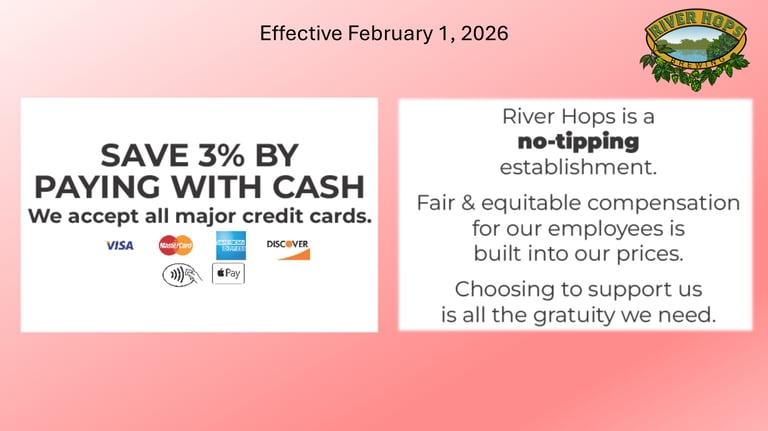 River Hops Brewing, a combination brewery, taproom, and entertainment venue, began serving a unique assortment of craft beers from its 15 taps to the public in July 2018 in the Fort Dodge, Iowa, historic center.The building built in the 1950s was a radio station most recently and a savings and loan prior to that. Given the building's history, a good deal was repurposed and materials from other local reclamation projects were used during renovation and 12-foot addition to create a unique industrial and eclectic look. The brick around the bar is from the Hydroelectric Dam; wooden beams are from a farmstead near Barnum; and the brewery windows are from a house remodeled in town. Even the furniture had a previous life before re-imagined for use in the taproom. The result is a striking facility with a welcoming feel that has incorporated a significant amount of Fort Dodge history. Customers seated near the large front windows look out on an attractive green space directly across Central Avenue from River Hops Brewing.