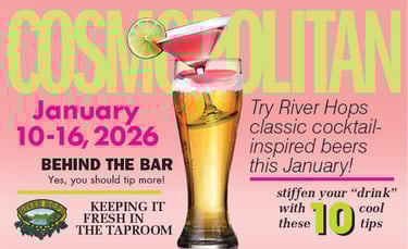 River Hops Brewing, a combination brewery, taproom, and entertainment venue, began serving a unique assortment of craft beers from its 15 taps to the public in July 2018 in the Fort Dodge, Iowa, historic center.The building built in the 1950s was a radio station most recently and a savings and loan prior to that. Given the building's history, a good deal was repurposed and materials from other local reclamation projects were used during renovation and 12-foot addition to create a unique industrial and eclectic look. The brick around the bar is from the Hydroelectric Dam; wooden beams are from a farmstead near Barnum; and the brewery windows are from a house remodeled in town. Even the furniture had a previous life before re-imagined for use in the taproom. The result is a striking facility with a welcoming feel that has incorporated a significant amount of Fort Dodge history. Customers seated near the large front windows look out on an attractive green space directly across Central Avenue from River Hops Brewing.