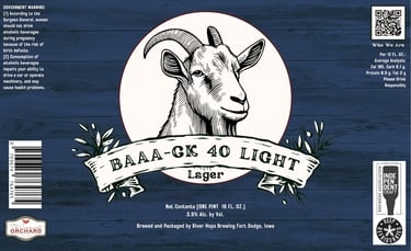 This tasty light beer is made exclusively for The Community Orchard in Fort Dodge IA, so You'll need to visit the orchard. For everyone who says they only drink “domestic” light beers, this will be a surprise. Light in color, light in calories, but with a solid malt flavor and balanced Pilsner-style hops. Very smooth & refreshing.